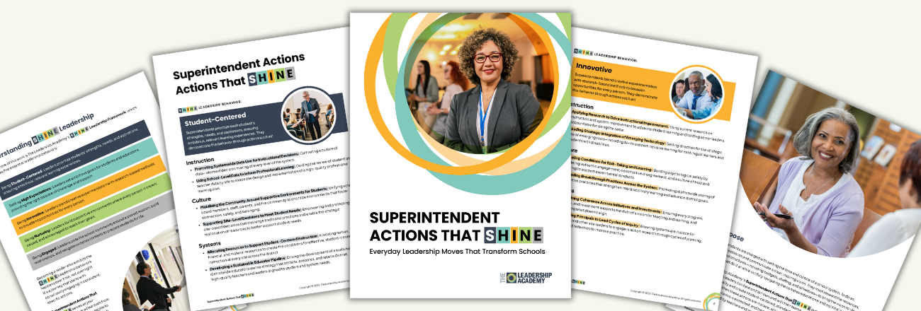 Grounded in The Leadership Academy’s SHINE Leadership Framework, the tool translates decades of research into actionable steps that help superintendents lead with coherence and clarity. Through SHINE, leaders become more student-centered, hold high expectations, and are innovative, nurturing, and engaged—embodying the qualities that bring lasting transformation to their systems.